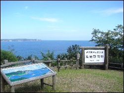 島内おすすめの散歩コース 園地展望台や休憩所からは紺碧の大海原が見下ろせます。春にはきれいな 桜が咲き広がり、別名桜公園とも言われています。 (当館より徒歩15分)
